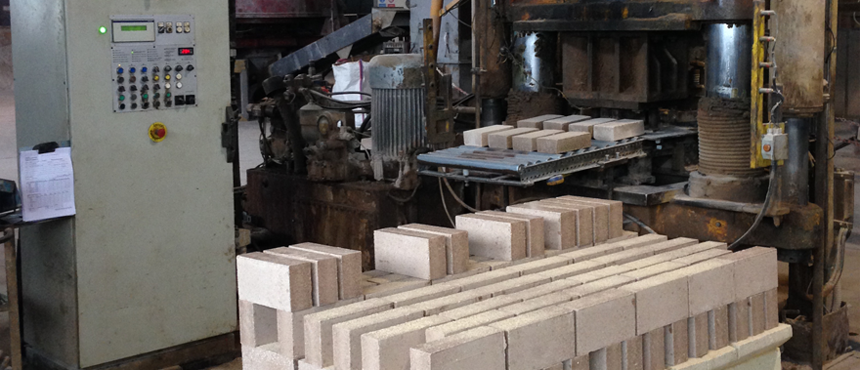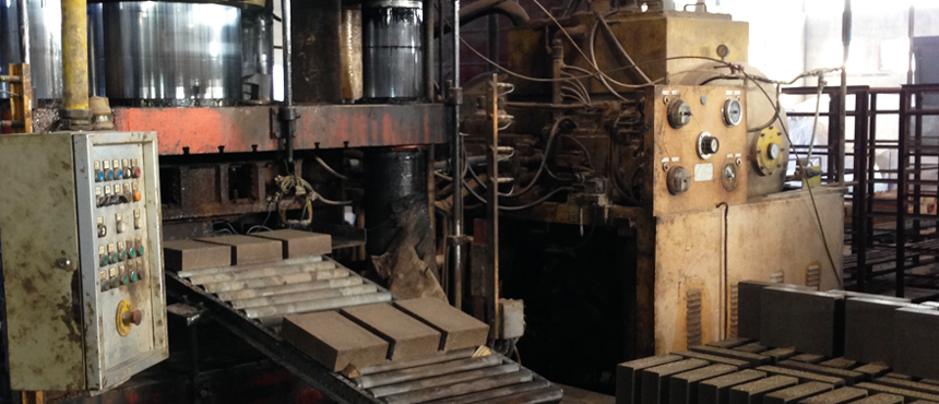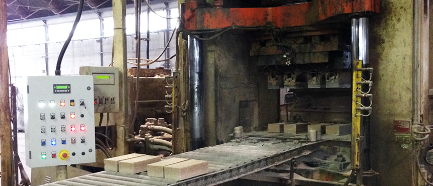 Tre presse idrauliche da 800 / 1100/ 1400 tonnellate gestite completamente da P.L.C. garantiscono la corretta geometria e dimensione dei prodotti nonché la densità desiderata.